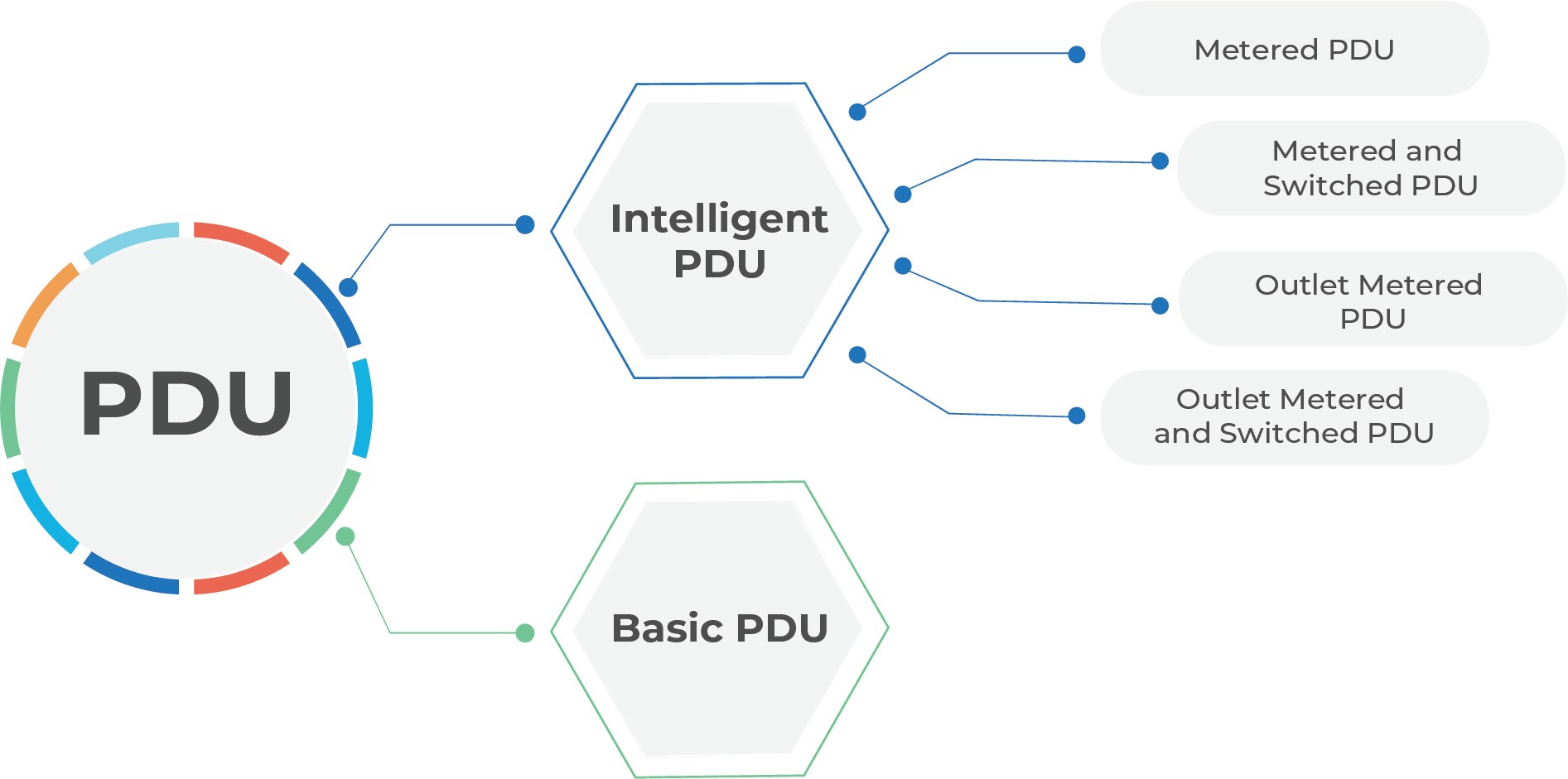 Rozdział energii jest ułatwiony poprzez organizację gniazdek na prostych wzorcach jako obwody rozgałęzione, które są pokazane wzdłuż PDU.